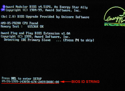 Fora os programas, procure na tela do POST (aperte "Pause/Break" para facilitar) na última linha algo como o destacado na figura abaixo: